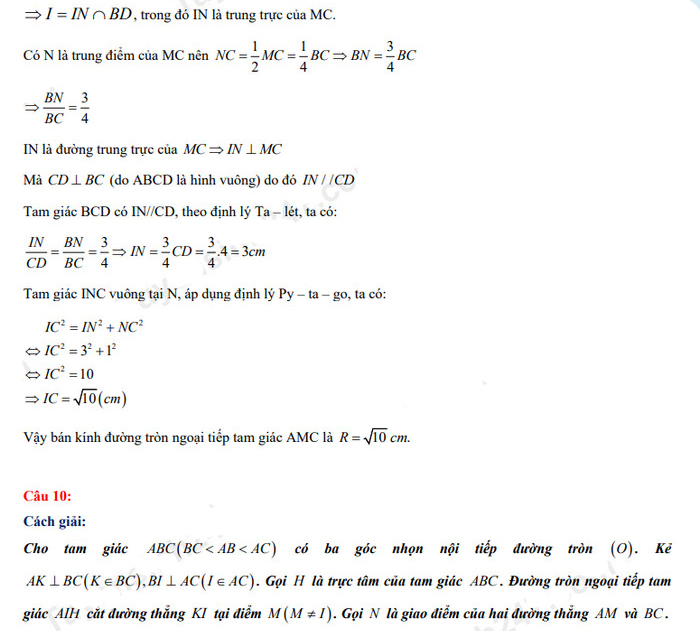Đáp án đề thi vào lớp 10 môn Toán tỉnh Thái Nguyên 2023