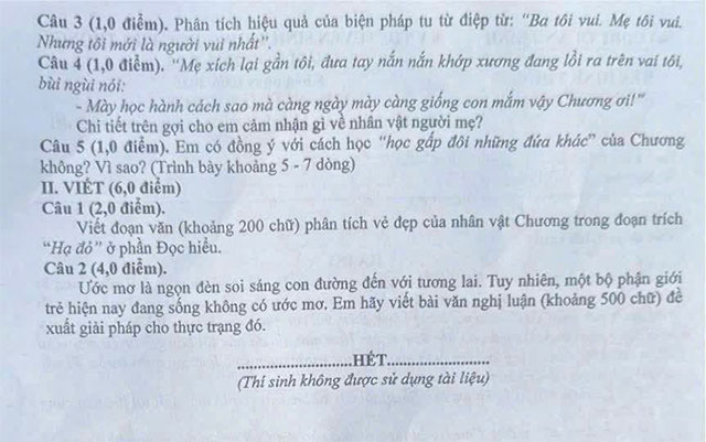 Đề thi vào 10 môn Văn 2023 tỉnh Quảng Bình