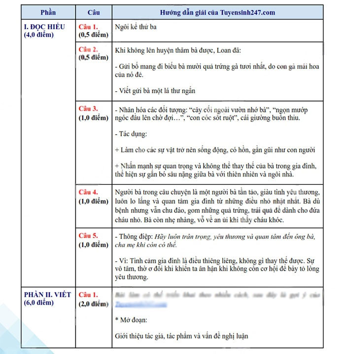 4. Đáp án đề thi tuyển sinh lớp 10 môn Văn huế 2024-2025