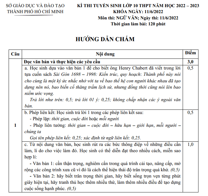 1. Đáp án đề thi vào lớp 10 môn Văn TP HCM 2025 chính thức