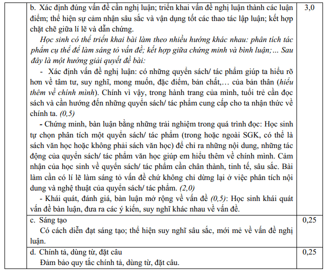 Đáp án đề thi lớp 10 môn Văn chuyên Khoa học Xã hội và Nhân văn 2023