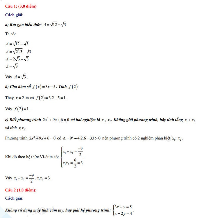 Đáp án đề thi tuyển sinh lớp 10 môn Toán An Giang 2025