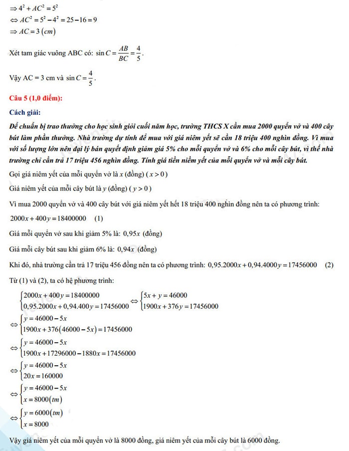 Đáp án đề thi tuyển sinh lớp 10 môn Toán Đà Nẵng 2025