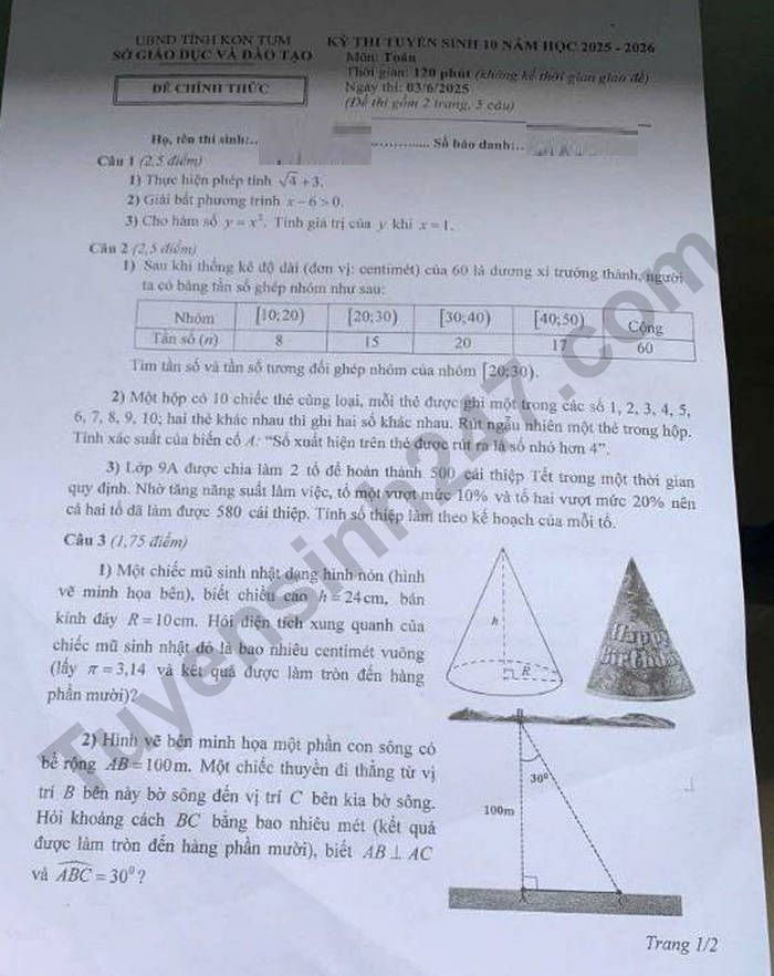 1. Đề Toán vào lớp 10 Kon Tum 2025-2026