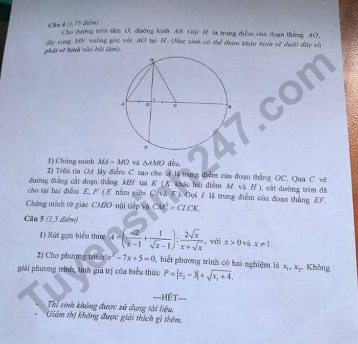 - Đề thi thử vào 10 môn Toán TP Nam Định