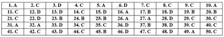 | 41.C | 42.D | 43.C | 44.B | 45.A | 46.D | 47.D | 48.B | 49.C | 50.D |