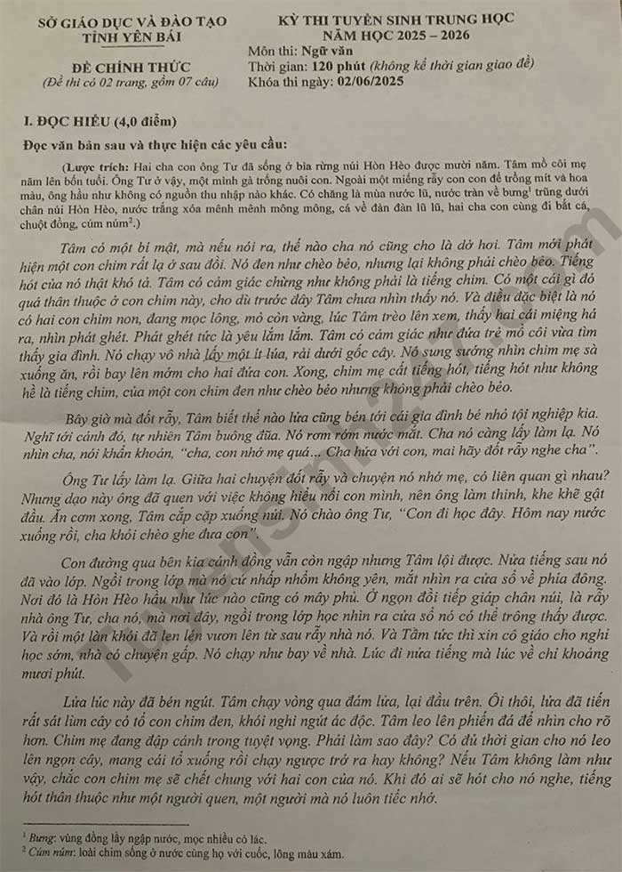 2. Đề thi Văn vào 10 yên Bái 2025-2026
