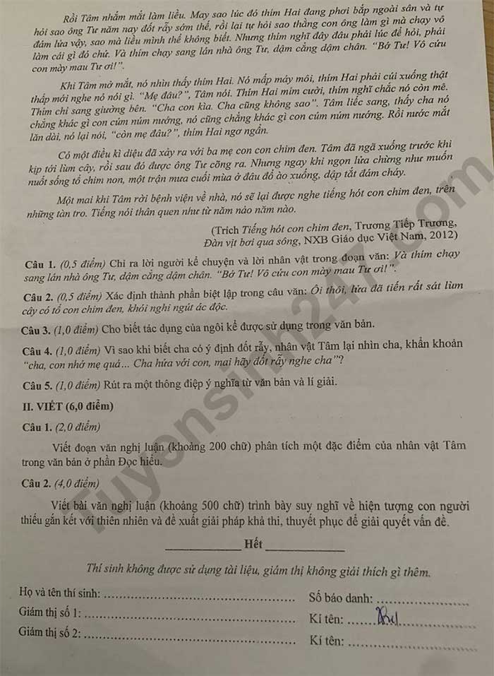 6. Đề thi tuyển sinh vào lớp 10 môn Văn Yên Bái 2022