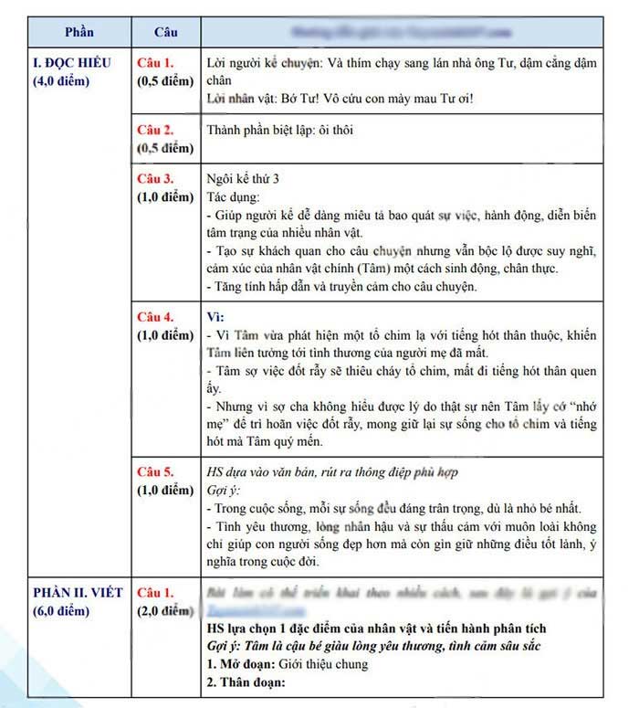- 4. Đáp án đề thi tuyển sinh lớp 10 môn Văn tỉnh Yên Bái 2023