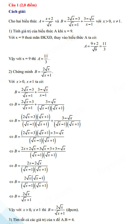 1. Đáp án đề Toán vào 10 Hà Nội 2025 chính thức
