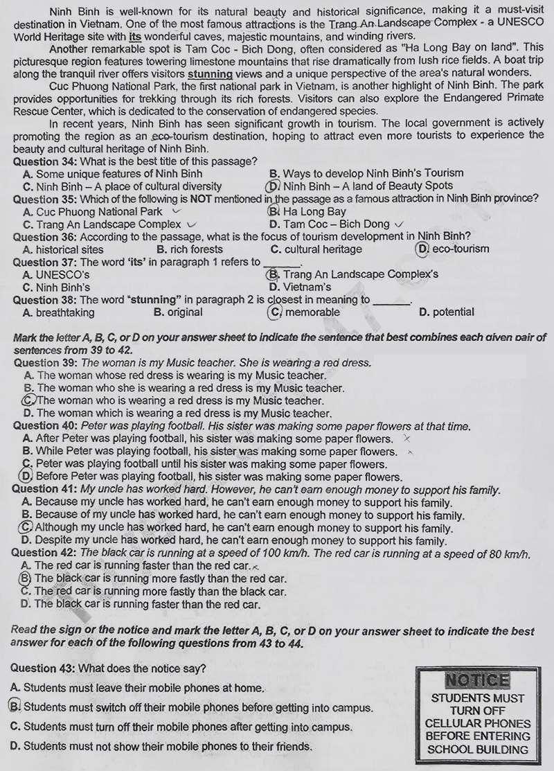 Đáp án đề thi vào 10 môn Tiếng Anh Ninh Bình 2025 đang được các thầy cô giải. Các em nhấn F5 để xem đáp án mới nhất.