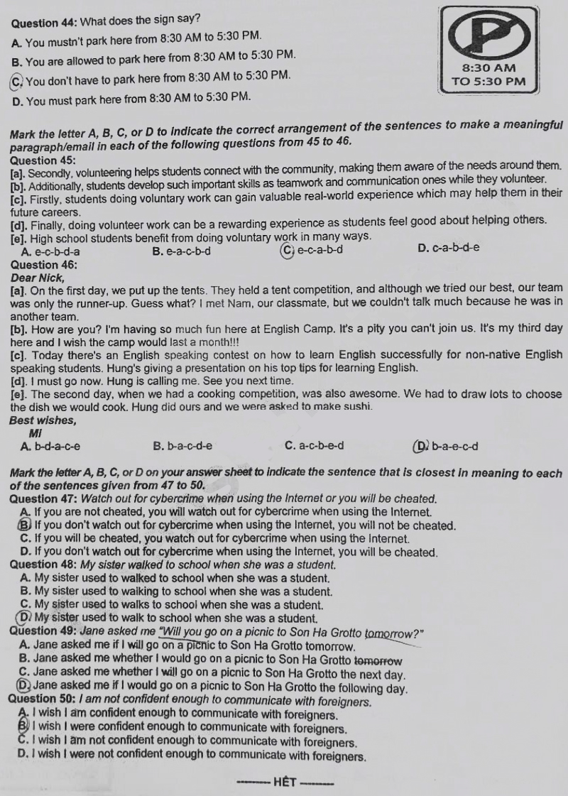3. Đáp án đề thi tuyển sinh lớp 10 môn tiếng Anh 2024 Ninh Bình - mã đề 243