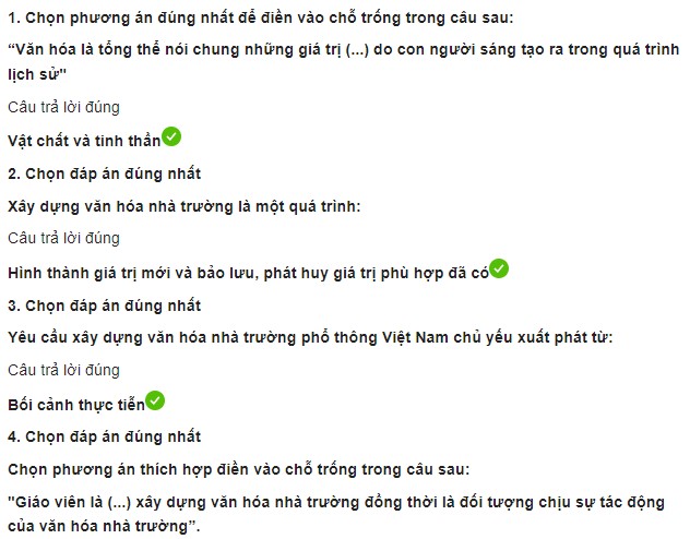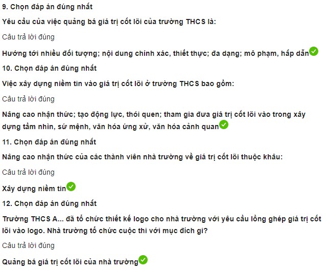 Câu hỏi trắc nghiệm cuối khóa module 6 THCS