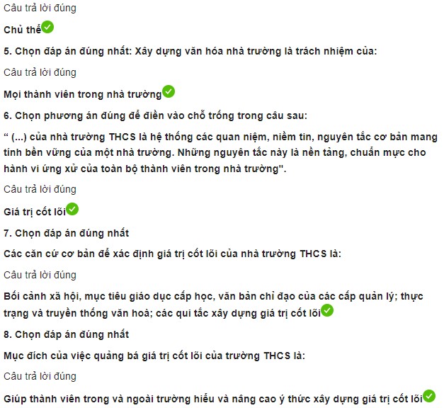 Đáp án Module 6 THCS bao gồm Đáp án trắc nghiệm Module 6 THCS + Bài tập cuối khóa module 6 THCS. Sau đây mời các bạn cùng tham khảo để hoàn thiện nội dung bài kiểm tra cuối khóa Module 6