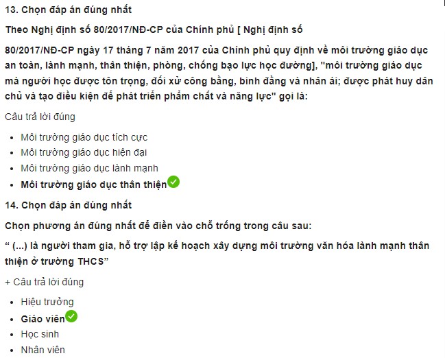 Dưới đây là Đáp án 20 câu hỏi trắc nghiệm Module 6 THCS và Kế hoạch xây dựng môi trường văn hoá nhà trường lành mạnh, thân thiện ở trường THCS mới nhất 2025.