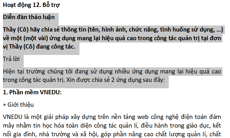 Đáp mô đun 9 cán bộ quản lý: Ứng dụng công nghệ thông tin, khai thác và sử dụng thiết bị công nghệ trong dạy học và giáo dục học sinh là tài liệu tham khảo hữu ích giúp giáo viên tiết kiệm thời gian và công sức khi học tập modul 9.