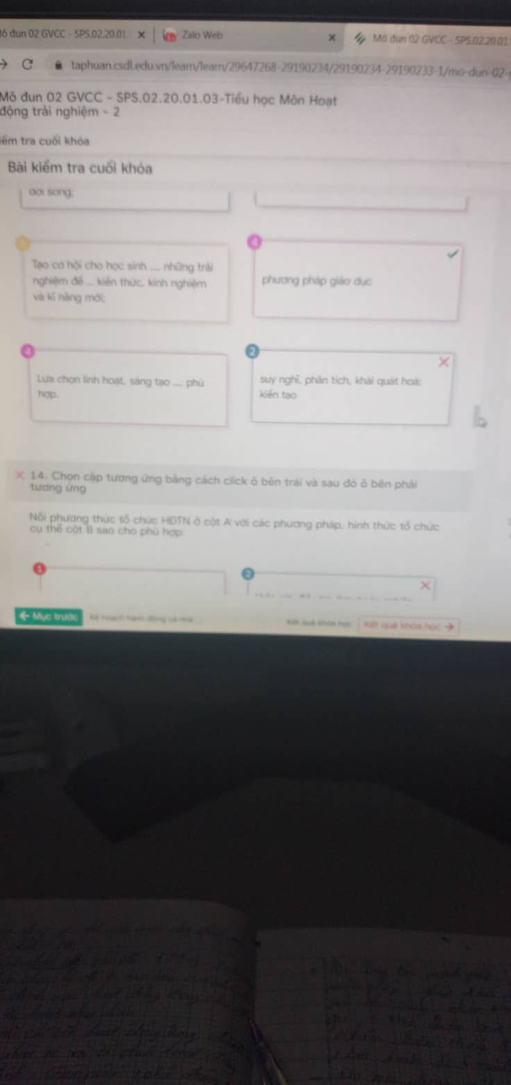 Đáp án trắc nghiệm tập huấn và bồi dưỡng Giáo viên Mô Đun 2 - Tất cả các môn: Cơ sở lý luận, Tiếng việt, Toán, Hoạt động trải nghiệm, TNXH, Mỹ thuật, Lịch sử địa lý, Đạo đức, GDTC......... là đáp án để các thầy cô tham khảo nhằm hoàn thành bài tập trong Chương trình bồi dưỡng giáo viên trên taphuan csdl. Mời các bạn tham khảo chi tiết.