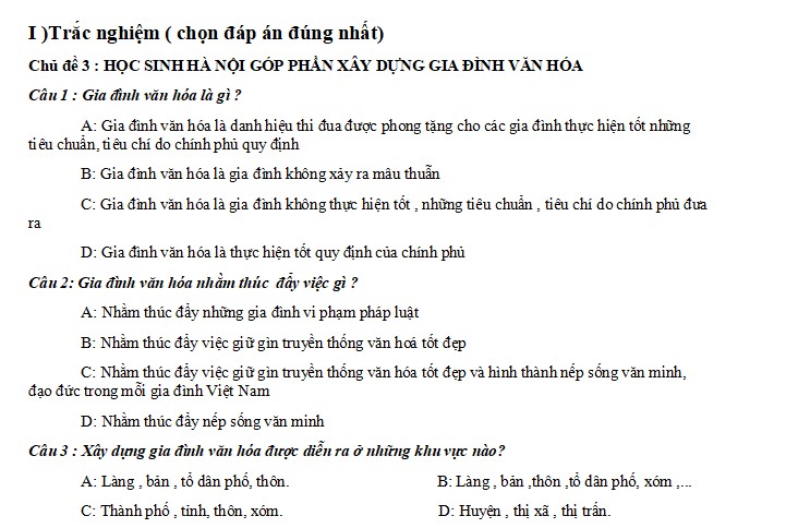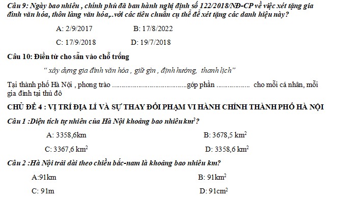 Đề thi học kì 1 môn Hoạt động trải nghiệm, hướng nghiệp lớp 6 sách Chân trời sáng tạo