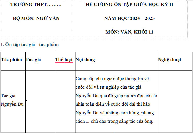 Đề cương ôn tập giữa kì 2 Văn 11 năm 2024 - 2025 (Sách mới)