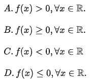 Câu 12: Cho tam thức bậc hai . Mệnh đề nào dưới đây đúng ?
