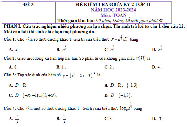 3. Đề thi giữa kì 2 Toán 11 Cánh Diều có đáp án - đề 2