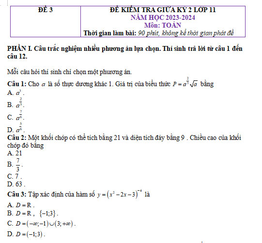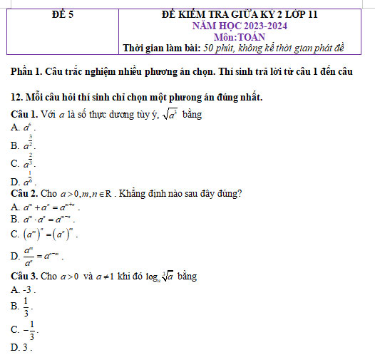 - Đề minh họa kiểm tra giữa kì 2 Toán 11 KNTT - đề 3