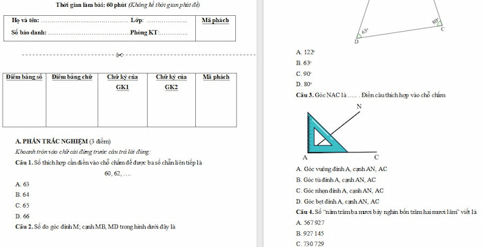 1.2. Đề thi giữa kì 1 Toán lớp 4 Kết nối tri thức
