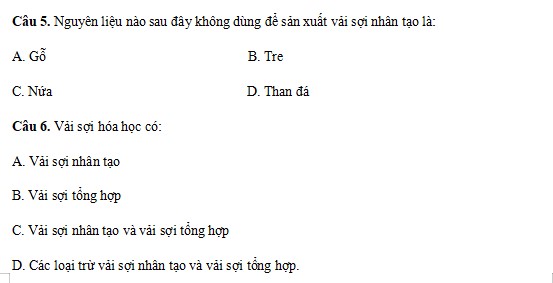 Câu 7. Vải sợi hóa học được chia làm mấy loại?