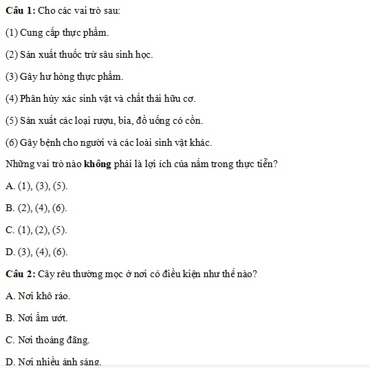 Câu 22. Các loài Nấm mốc sinh trưởng rất nhanh, gây ra sự ôi thiu của thức ăn như; Bánh mì, đào dâu, khoai lang….. trong quá trình bảo quản được phân vào nhóm nấm nào?