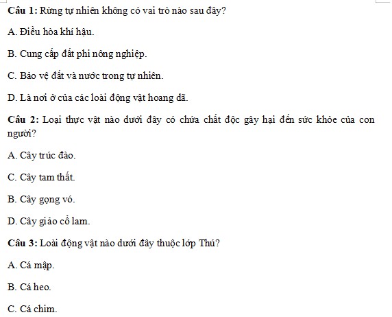 1. Trắc nghiệm nhiều lựa chọn (3 điểm)