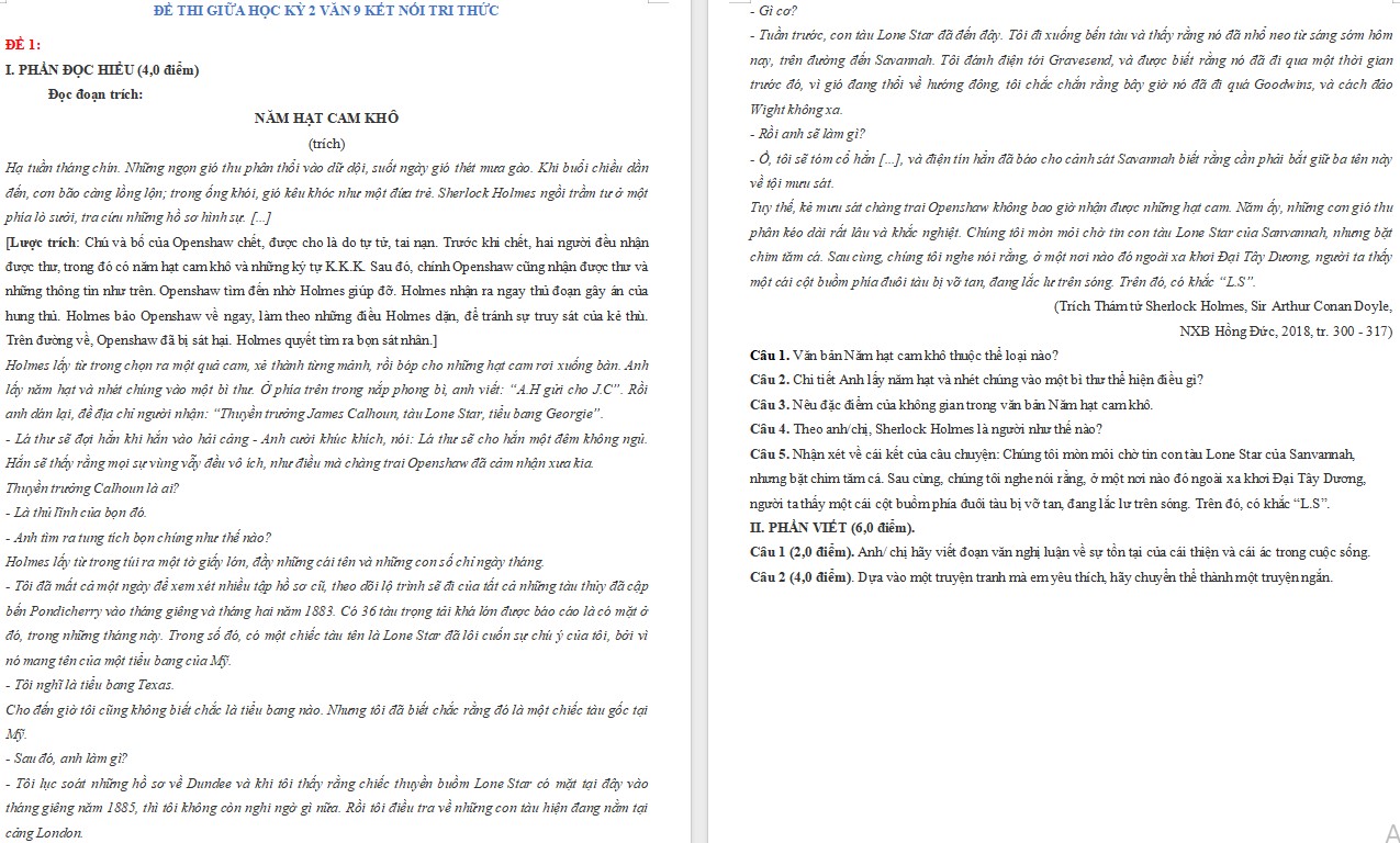 Đề thi giữa kì 2 ngữ văn 9 Kết nối tri thức