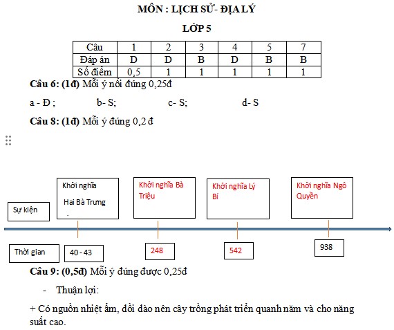 ĐÁP ÁN MÔN LỊCH SỬ VÀ ĐỊA LÍ