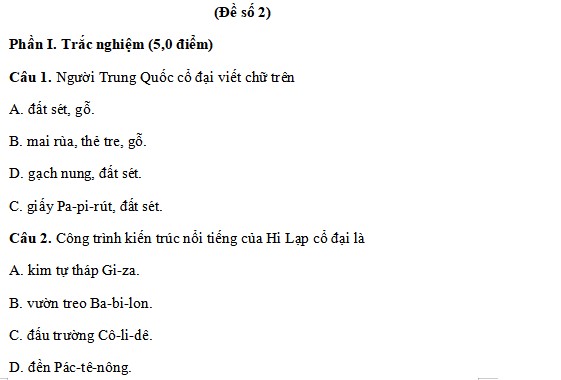 3. Đề thi Lịch sử - Địa lý lớp 6 kì 1 số 2