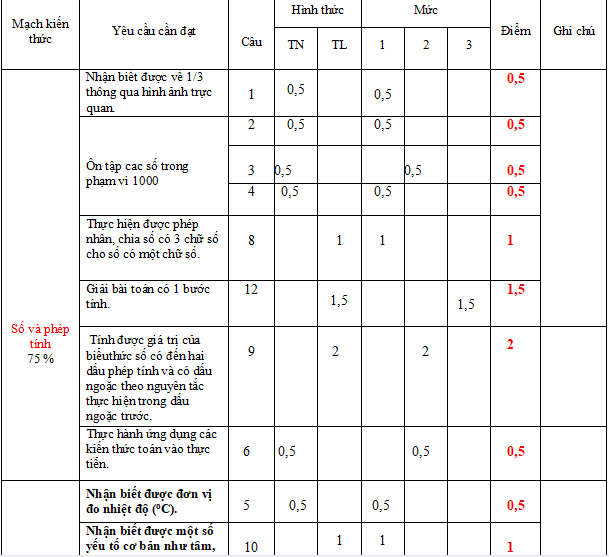 1.4. Ma trận đề thi học kì 1 Toán 3 năm 2024-2025 số 1