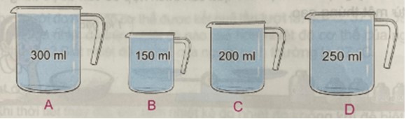 d) Sắp xếp các ca theo tứ tự đựng ít nước nhất đến nhiều nước nhất?