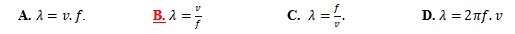 Câu 13: Một sóng âm lan truyền trong môi trường A với vận tốc vA, bước sóng λA khi lan truyền trong môi trường B thì vận tốc là vB = 2vA. Bước sóng trong môi trường B là