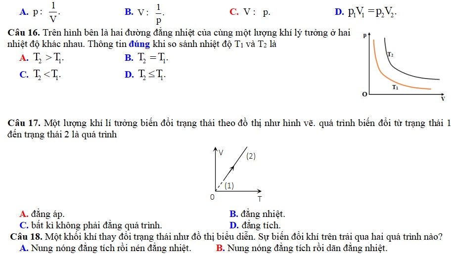 Câu 15. Hệ thức không phù hợp với định luật Boyle là