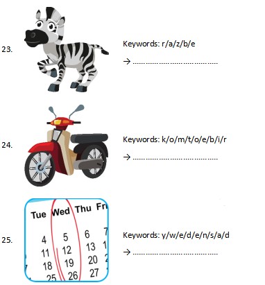 3. to/ by/ I/ motorbike/ go/ school/ ./