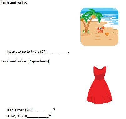 Listen and choose the correct pictures. There is one example. (4 questions)