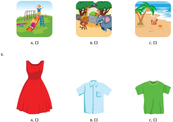 Look, read and choose the correct answer. There is one example. (3 questions)