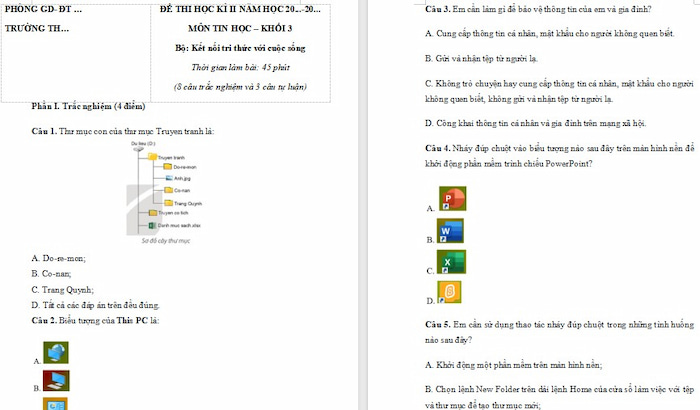 2. Đề thi cuối kì 2 Tin học lớp 3 Kết nối tri thức số 2