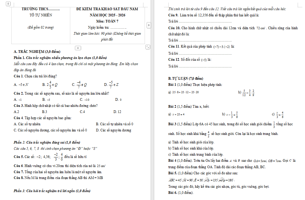 Bài viết hay Đề thi lớp 7