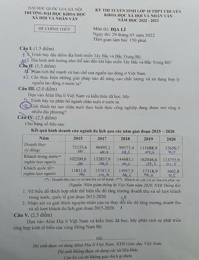 Sau đây là nội dung chi tiết đề thi chuyên Khoa học xã hội và nhân văn 2022 môn Địa, mời các bạn cùng theo dõi.