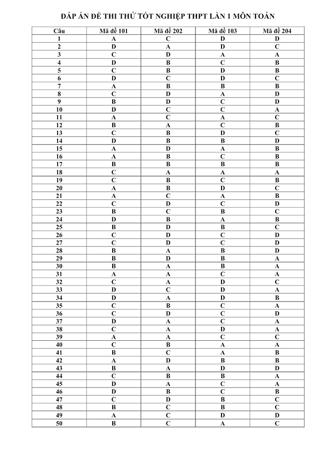 1. Đáp án đề khảo sát Toán 12 Hà Nội 2022