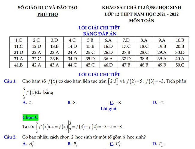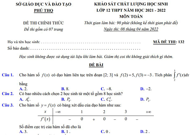 2. Đề thi thử THPT quốc gia 2022 môn Toán Phú Thọ