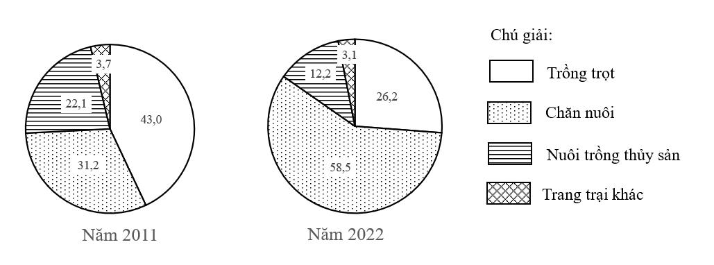 Cơ cấu trang trại phân theo lĩnh vực hoạt động ở nước ta giai đoạn 2011 – 2022