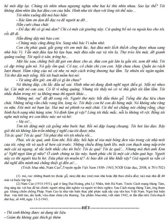 Các tác phẩm đã thi THPT Quốc gia môn Văn các năm (Tham khảo)