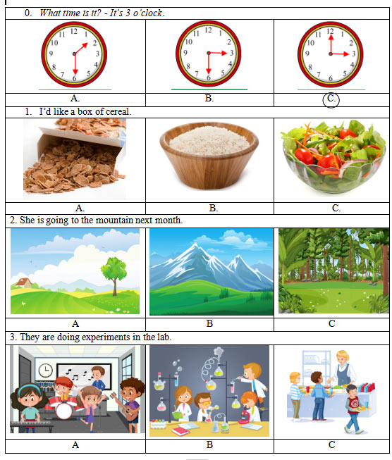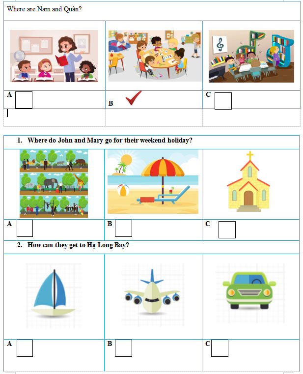 Questions 1: Listen and tick (P) in the box. (0,75 pt)