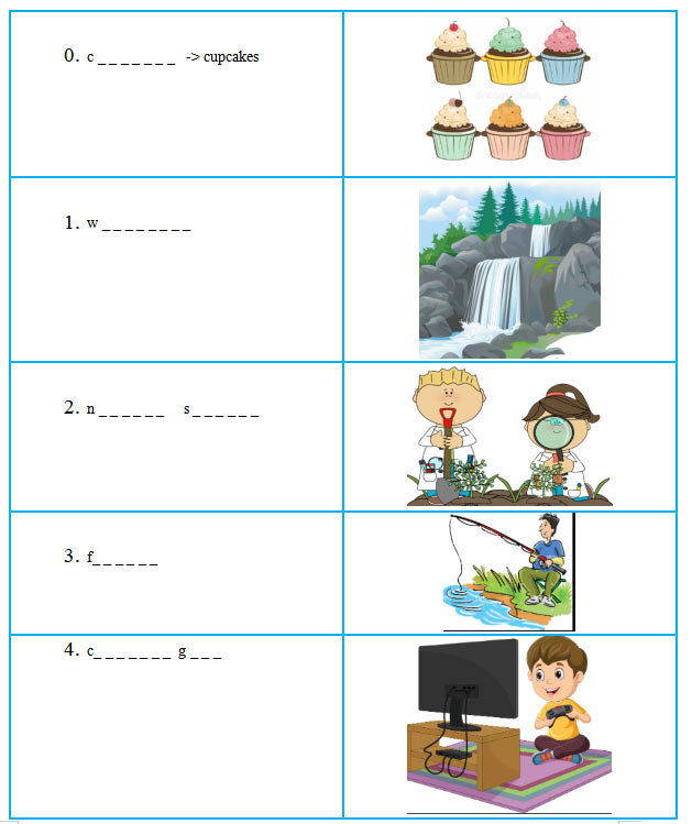 Question 6: Look at the pictures and complete the words. (0,5 pt)