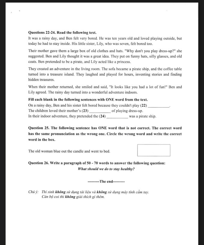 Đề thi vào lớp 6 môn Tiếng Anh trường Nguyễn Tất Thành 2024